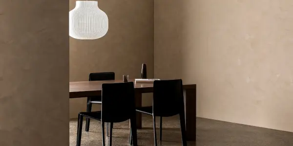 At a glance, Strong Haven speaks to Brutalist origins – think industrial, unusual shapes, heavy-looking materials and straight lines – which are made to feel liveable and secure by introducing natural textures and warmer neutrals. Those neutrals are characterised by deeper mid-tones that have a predominately ochre undertone.Â