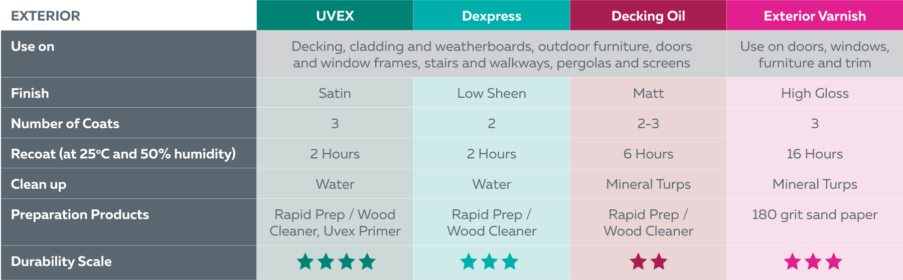 Calculate the square metre area that you are coating to ensure that you have the correct amount of product for your project. This will help you achieve the expected lifespan from your timber finish.
